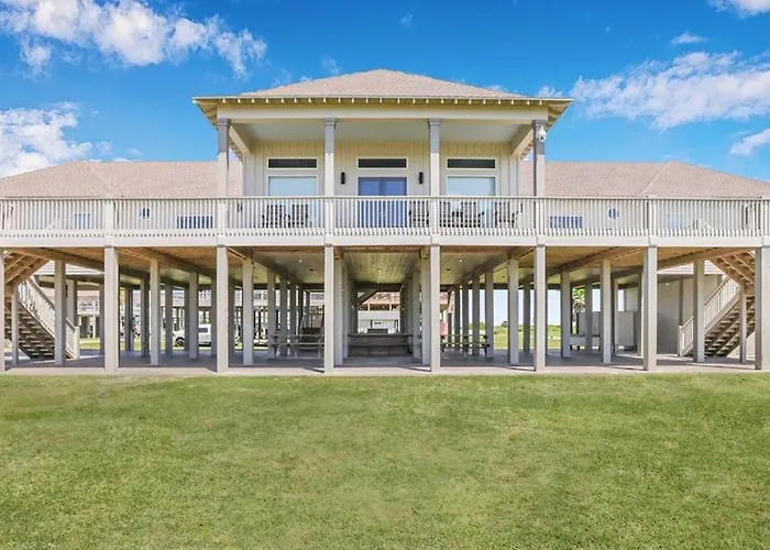 Localizada em Bolivar Peninsula, Sandy Orchid Lodge Home oferece campo de ténis e campo de golfe. A vila vem com varanda, 8 quartos e 8 casas de banho.